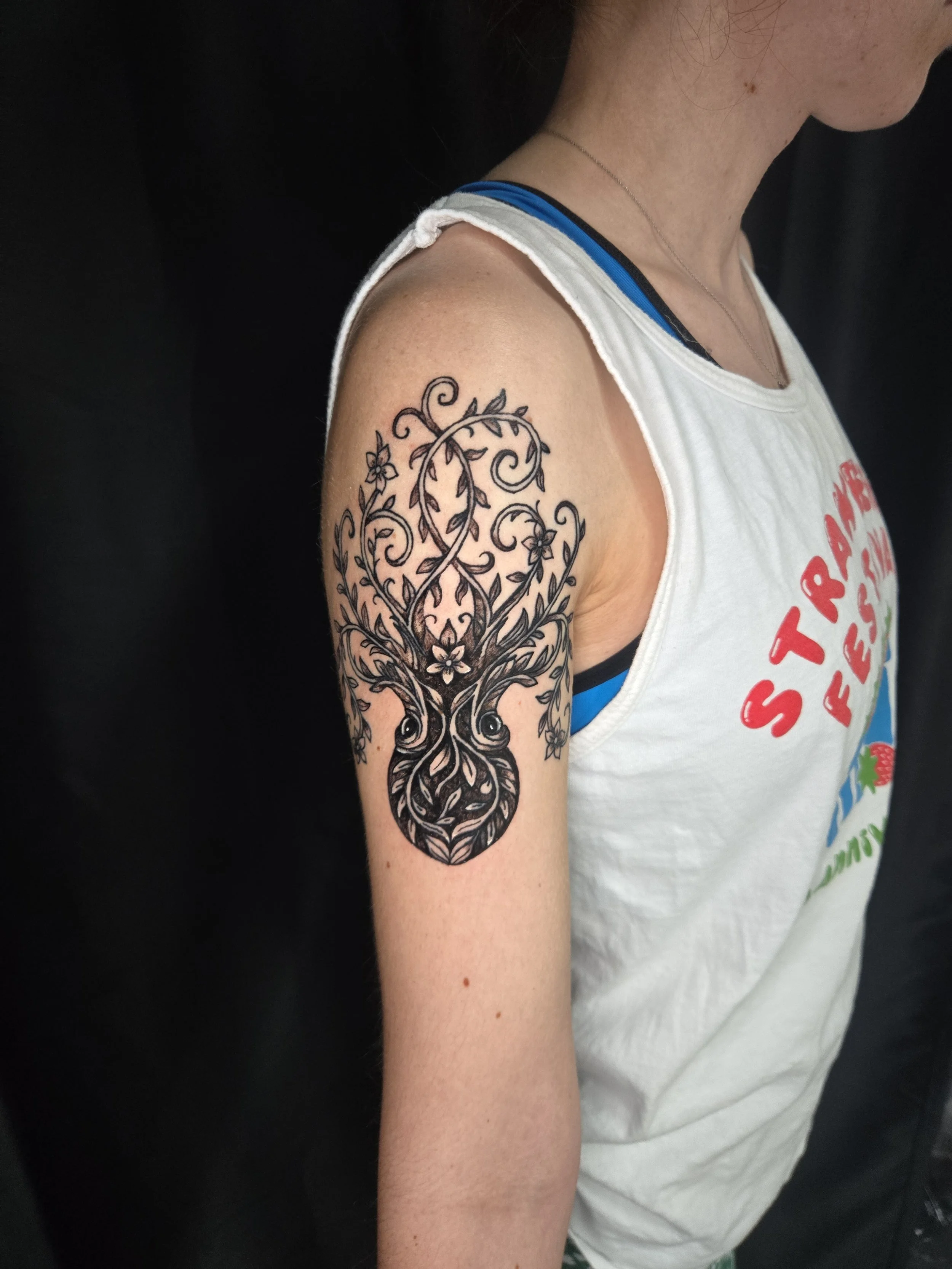 Endr (Ian) is a first-year artist at Apocalypse Girl Tattoo, bringing a strong foundation in graphic design and mural work to their craft. Known for precision and clean linework, their style is steadily evolving toward the rich detail and layered complexity of realism and surrealism showcased in their drawings.